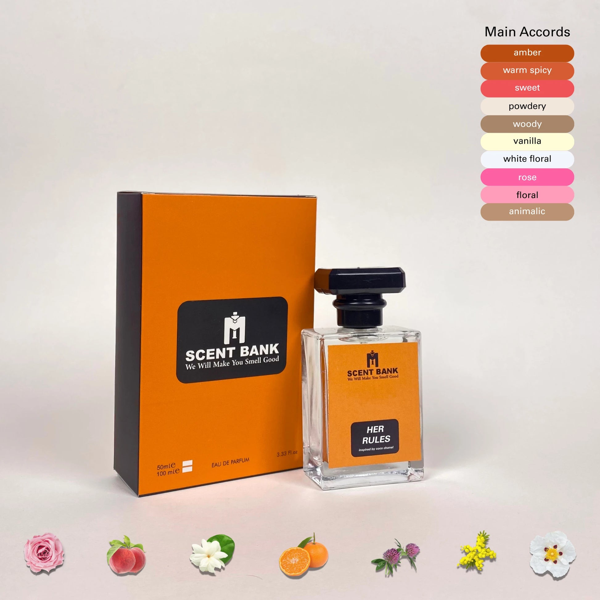 Citrus and orange blossom introduce a bright opening, leading to a heart of romantic rose and jasmine. The base of amber, sandalwood, and tonka bean delivers warmth, elegance, and a touch of sensual depth.